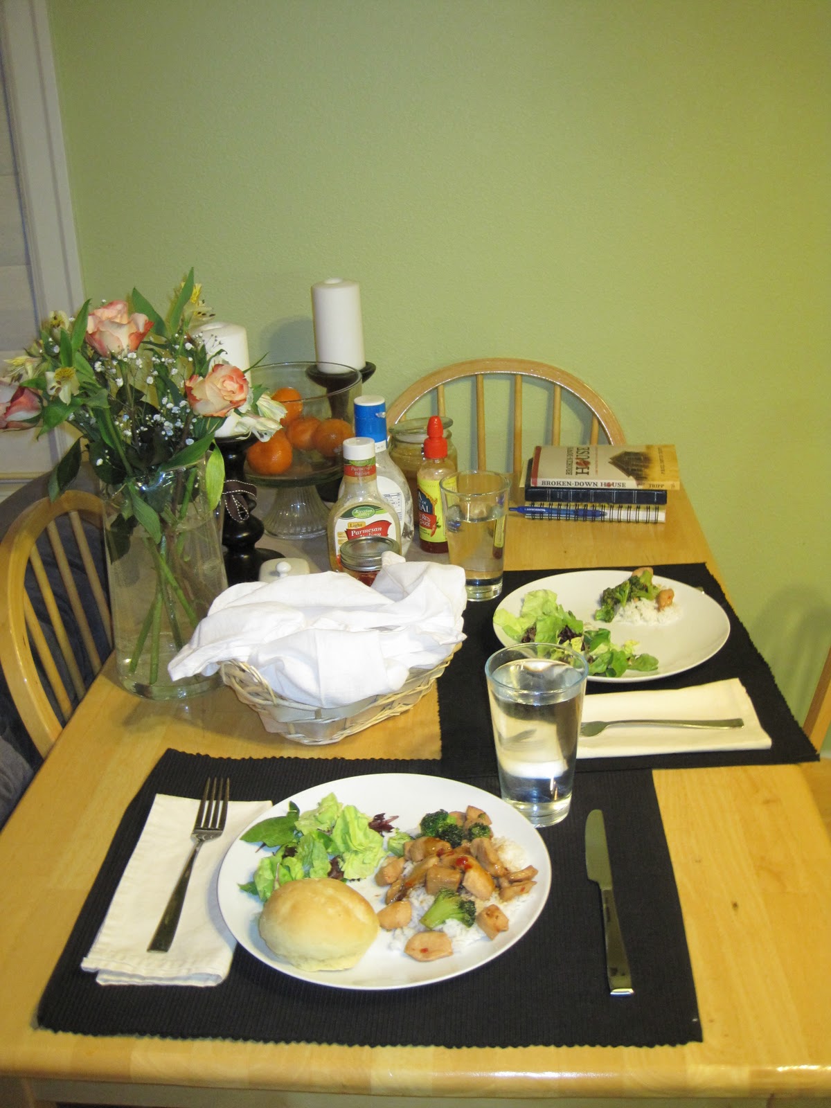 So tonight (savoring/celebrating our last night before Cole is inundated with mid-term studying), I made homemade rolls and concocted this chicken-broccoli-sweet-chili-sauce-and-rice creation for dinner.